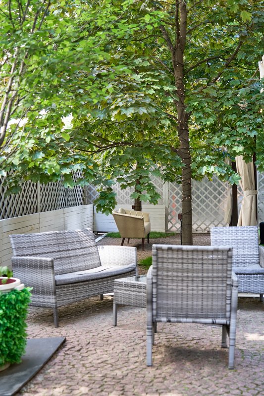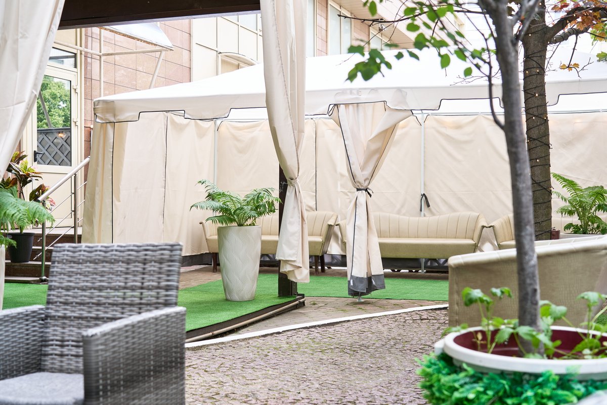 В тёплое время года лучше чаще находиться не в помещениях, а на улице. И не только чтобы прогуляться, но и пообедать или поужинать. Специально для таких случаев у банкетного зала Эль Граф есть своя веранда с выходом на улицу.